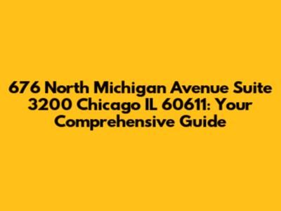 Hey guys! Ever wondered about the iconic address of 676 North Michigan Avenue, Suite 3200, Chicago, IL 60611? You've landed in the right spot! This isn't just any address; it's a prestigious location nestled in the heart of Chicago's Magnificent Mile. In this comprehensive guide, we're going to dive deep into what makes this address so special, from its prime location and the businesses it houses to its architectural significance and the vibrant neighborhood it calls home. We will explore everything this renowned location has to offer, making sure you get a complete picture of what 676 North Michigan Avenue, Suite 3200 is all about. Whether you're planning a visit, researching business locations, or simply curious about this Chicago landmark, this guide is designed to provide you with all the information you need. So, let's get started and uncover the many facets of this iconic address together! Prepare to discover the vibrant energy and opportunities that define this prime Chicago destination. This isn't just an address; it's a gateway to success, innovation, and a true taste of Chicago's dynamic spirit. Let's explore what makes 676 North Michigan Avenue, Suite 3200 a standout location in the Windy City. From its bustling atmosphere to its strategic importance, this address embodies the essence of Chicago's commercial and cultural vibrancy. So buckle up and get ready for an in-depth journey into the heart of the Magnificent Mile!