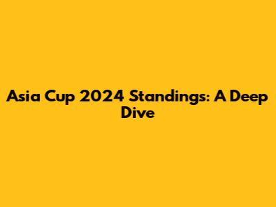 Hey cricket fans! The Asia Cup is in full swing, and the competition is hotter than ever. Whether you're a die-hard supporter or just casually following the matches, keeping track of the Asia Cup 2024 standings is super important. This year's tournament promises intense battles, stunning performances, and plenty of nail-biting finishes. In this comprehensive guide, we'll break down everything you need to know about the standings, including team rankings, key players, and what it all means for the road to the final. So, grab your favorite snacks, settle in, and let's dive into the exciting world of the Asia Cup!