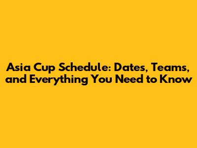 Asia Cup Schedule: Dates, Teams, And Everything You Need To Know