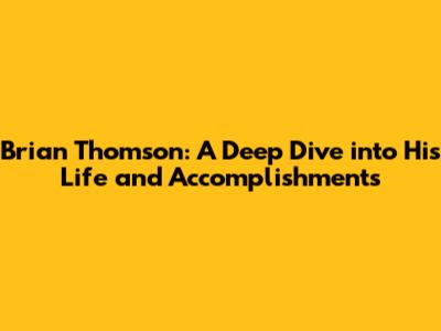 Brian Thomson: Unveiling His Life And Legacy
