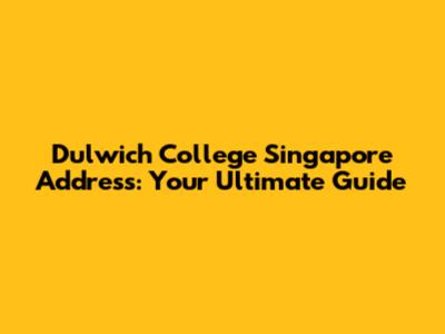 Dulwich College Singapore: Address & Comprehensive Guide