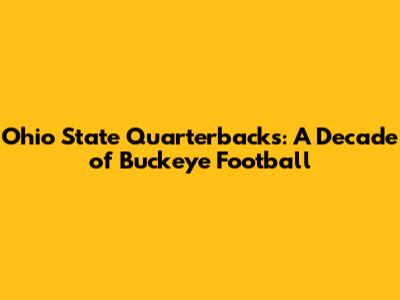Ohio State Quarterbacks: A Decade Of Buckeye Football
