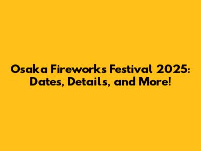 Osaka Fireworks Festival 2025: Dates, Details, And More!