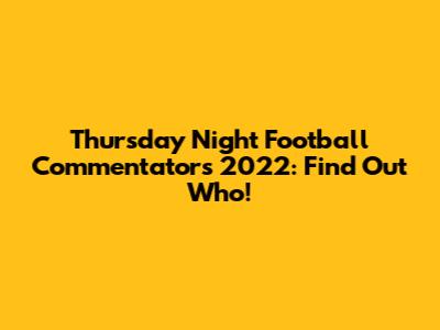 Hey football fans! Are you ready for some Thursday Night Football action? We all know that the games themselves are the main attraction, but let's be real – the commentators play a huge role in our viewing experience. They bring the energy, the insights, and sometimes even the laughs. So, who are the voices guiding us through the 2022 season? Let's dive into the exciting lineup of commentators for Thursday Night Football this year. Knowing who's in the booth can seriously amp up your viewing pleasure, providing expert analysis and keeping you engaged throughout the game. The right commentary team can elevate a good game to a great one, adding layers of context and excitement to every play. In the 2022 season, the lineup promises to be filled with experienced professionals and fresh voices, ensuring that fans get top-notch coverage every week. Whether you're a die-hard NFL enthusiast or a casual viewer, understanding who's calling the shots from the booth can enhance your understanding and appreciation of the game. Each commentator brings their unique style and expertise, contributing to the overall narrative of the game. So, let's break down who these individuals are and what they bring to the table, making sure you're fully informed and ready to enjoy Thursday Night Football to the fullest.