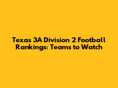 Hey football fans! Are you ready for some high-octane Texas high school football action? We're diving deep into the heart of Texas 3A Division 2, where the competition is fierce and the Friday night lights shine brightest. This division is known for its hard-hitting games, unpredictable outcomes, and the emergence of future gridiron stars. To keep you in the loop, we're bringing you the latest scoop on the teams that are making waves, the top contenders, and the dark horses to watch out for. Whether you're a die-hard fan, a college scout, or just someone who loves the thrill of the game, this is your go-to guide for all things Texas 3A Division 2 football. So, grab your favorite game-day snack, settle in, and let's break down the rankings and see who's poised to make a run for the championship! The road to the title is always filled with surprises, upsets, and unforgettable moments, and we're here to bring you along for every exciting step of the journey. Get ready to cheer on your favorite teams and witness the passion and dedication that make Texas high school football so special. Let's get started and explore the teams that are setting the standard in 3A Division 2 football this season. Remember, in Texas high school football, anything can happen, and that's what makes it so thrilling!
