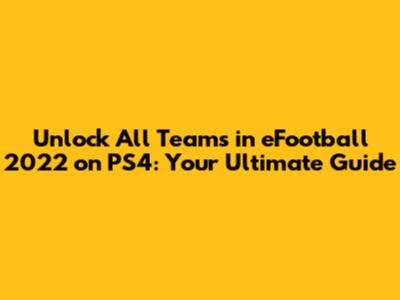Unlock Every Team In EFootball 2022 On PS4: Your Ultimate Guide